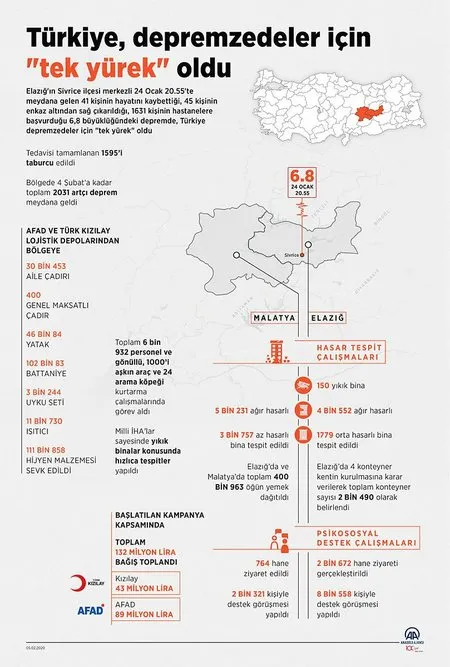 Psikososyal destek çalışmaları kapsamında ise Elazığ'da 12 bin 274, Malatya'da 3 bin 500 kişiyle görüşme yapıldı