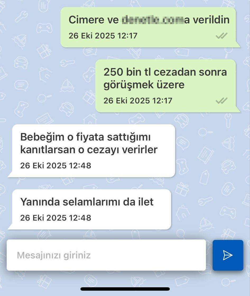 Alıcı ise ilan üzerinden Mustafa Ç.'ye mesaj göndererek, ilan fiyatının geçerli olup olmadığını sordu. Mustafa Ç. ise ilan fiyatının geçerli olmadığını, aracın fiyatının 2 milyon 700 bin TL olduğunu yazdı. Bunun üzerine alıcı, CİMER'e şikayet ettiği mesajını gönderdi. Mustafa Ç. ise "Bebeğim o fiyata sattığımı kanıtlarsan o cezayı verirler. Yanında selamlarımı da ilet" yazdı.