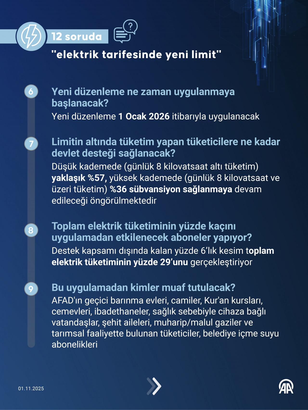 Yeni düzenlemeden bazı gruplarsa muaf tutulacak. Bunlar, AFAD'ın geçici barınma evleri, camiler, kur'an kursları, cemevleri, ibadethaneler, cihaza bağlı vatandaşlar, şehit aileleri, gaziler ve tarımsal faaliyette bulunan tüketiciler olarak belirlendi.