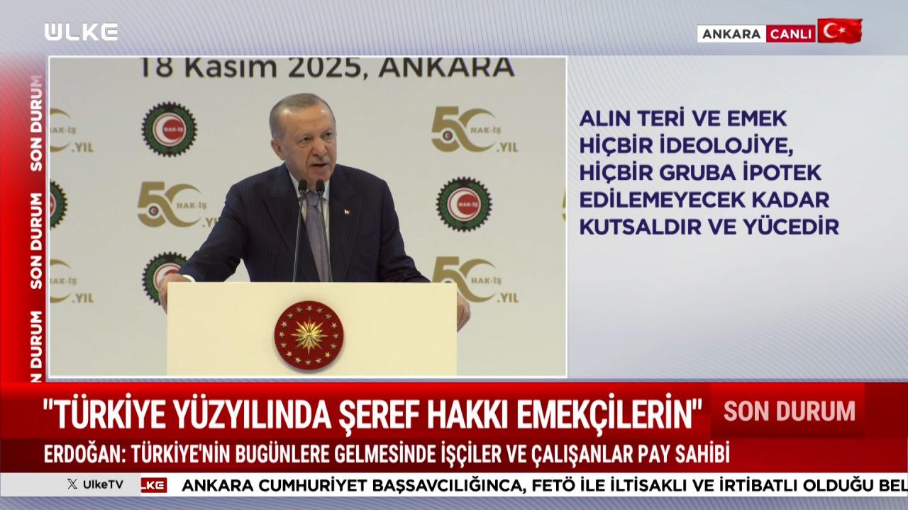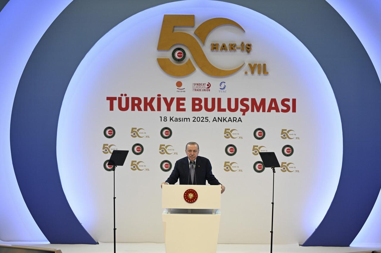 Cumhurbaşkanı Recep Tayyip Erdoğan, ATO Congresium'da düzenlenen "HAK-İŞ Konfederasyonu 50. Kuruluş Yıl Dönümü Programı"nda önemli açıklamalarda bulundu.