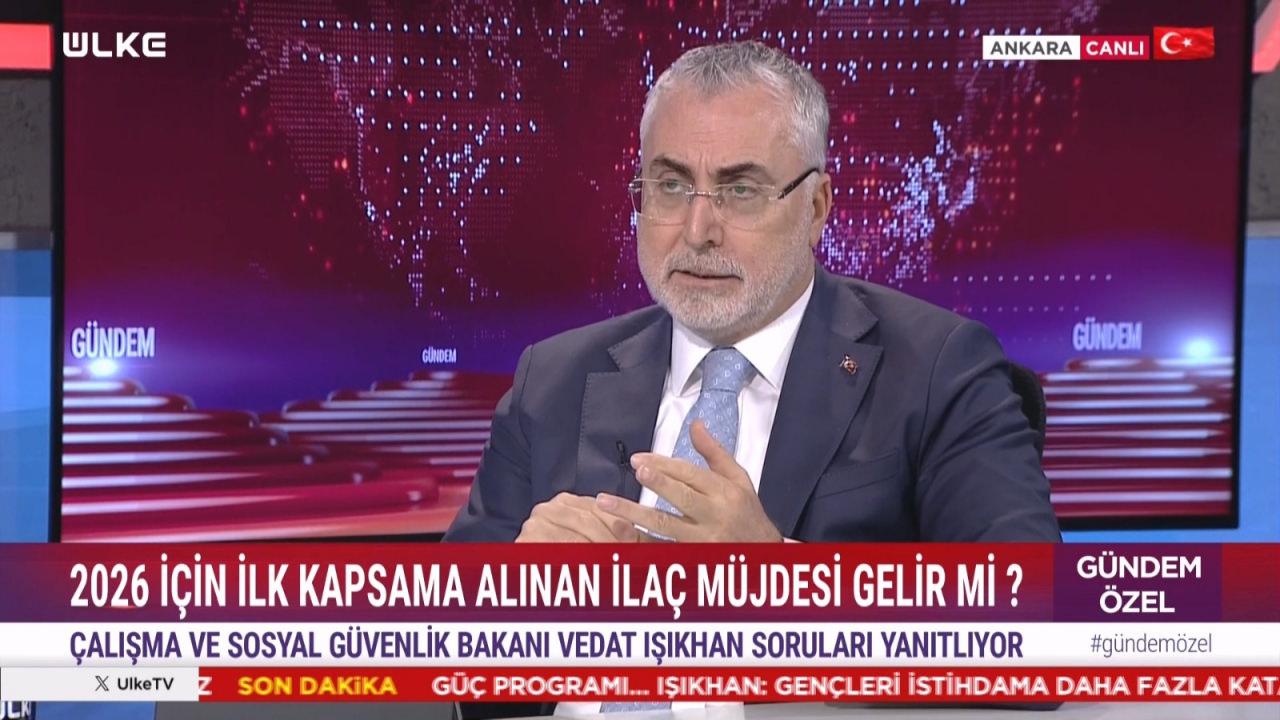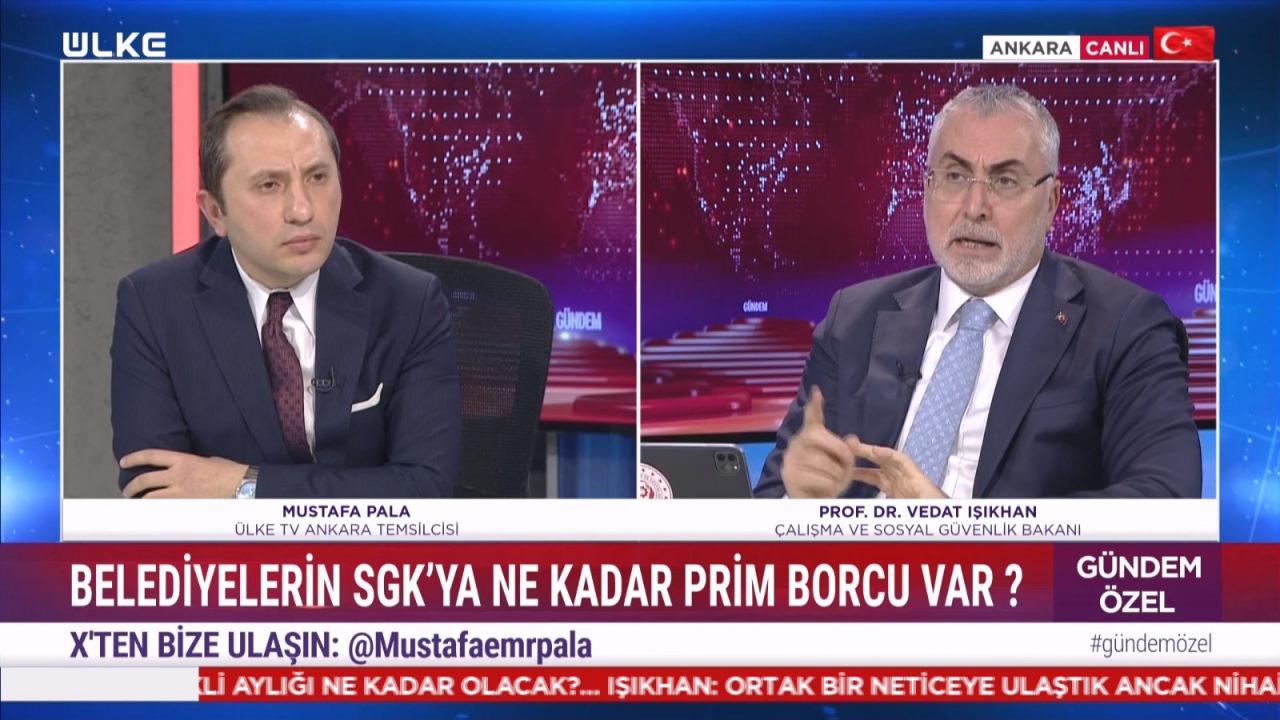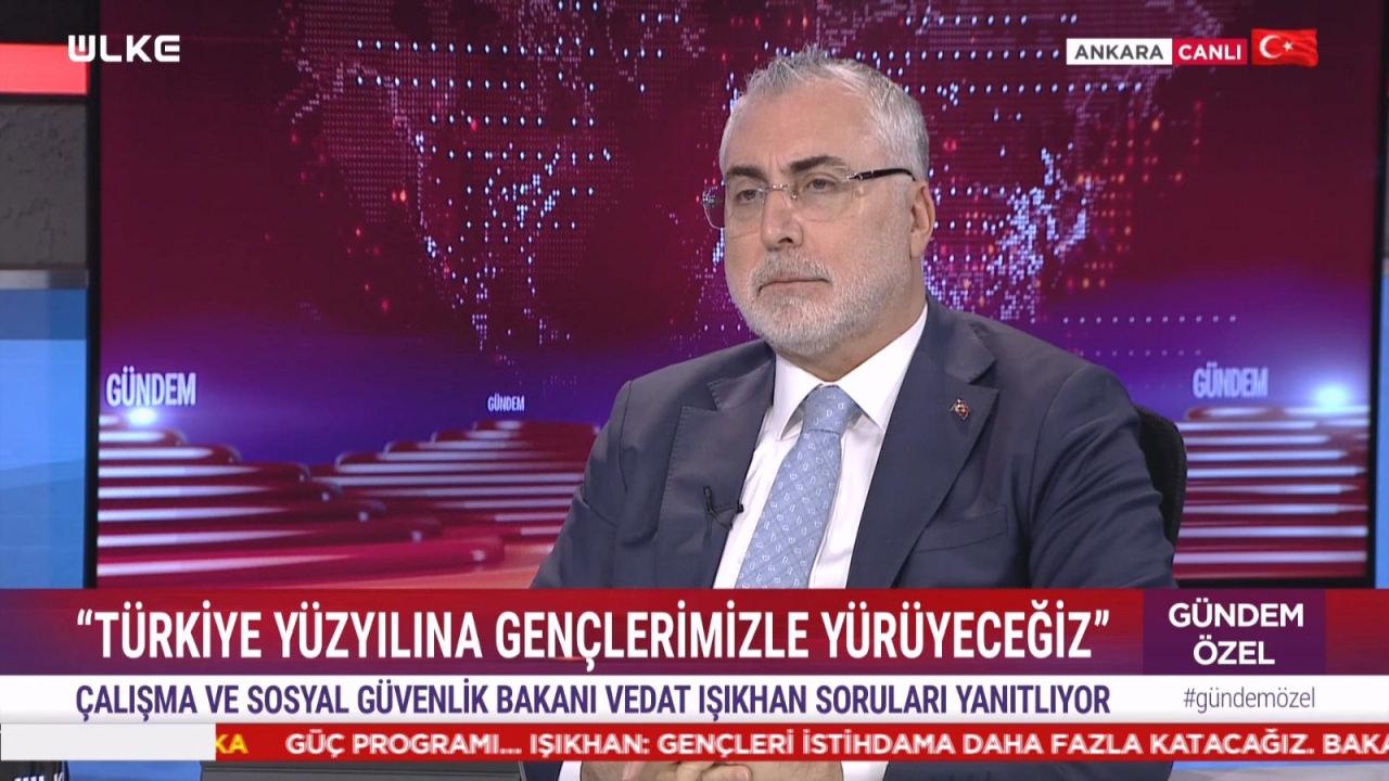 Son Dakika: Çalışma ve Sosyal Güvenlik Bakanı Prof. Dr. Vedat Işıkhan, ÜLKE TV ekranlarında yayınlanan Gündem Özel programında Mustafa Pala'nın konuğu oldu. Gündeme dair önemli açıklamalarda bulunan Bakan Işıkhan, Cumhurbaşkanı Recep Tayyip Erdoğan tarafından duyurulan Genç İstihdam Hamlesi ve Güç Programı'nın detaylarını paylaştı.
