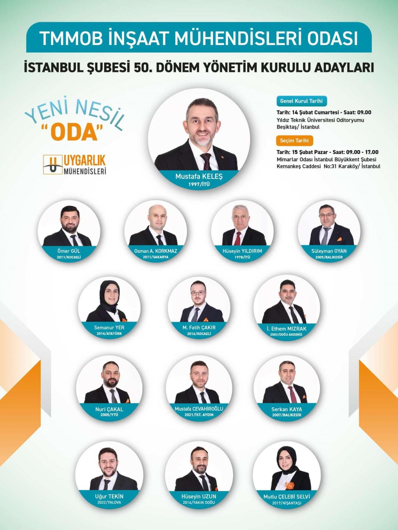 TMMOB İnşaat Mühendisleri Odası İstanbul Şubesinin 50. Olağan Genel Kurulu sonrası seçimler yarın yapılacak. 37 bin üyenin bulunduğu şubede üç farklı grup turuncu, beyaz ve kırmızı listelerle yarışacak.