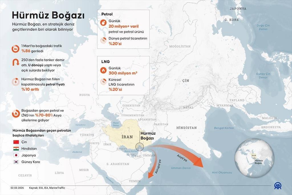 ABD ve İsrail'in İran'a yönelik operasyonları ve Tahran'ın bu duruma karşılık vermesi, dünya petrol sevkiyatının en kritik geçiş noktalarından biri olan Hürmüz Boğazı'ndaki trafiği doğrudan etkiledi.