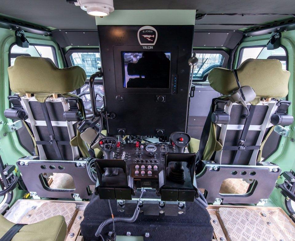 Kameralara yansıyan hedefe joystick kolla nişan alınıp tam isabet sağlanıyor.