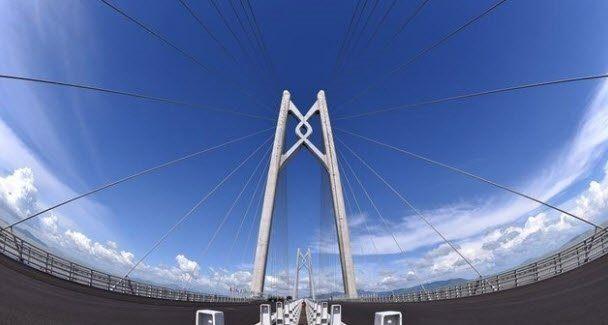 55 kilometre toplam uzunluğa sahip olacak dev yapının tamamlanan kısmı 22.9 kilometrelik köprü ve 6.7 kilometrelik de deniz altı tünelinden oluşuyor.