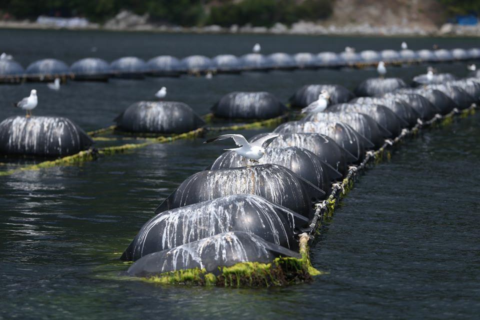 Midye tarlasında hasat sürüyor