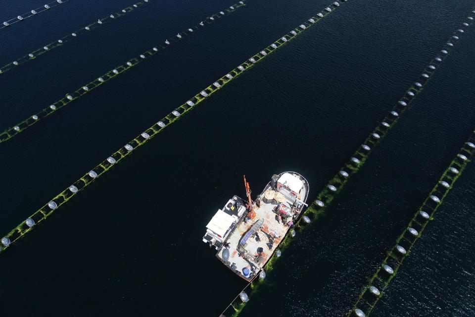 Midye tarlasında hasat sürüyor