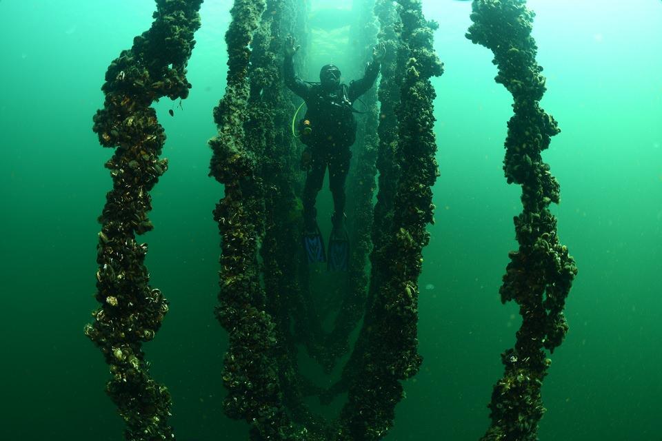 Midye tarlasında hasat sürüyor