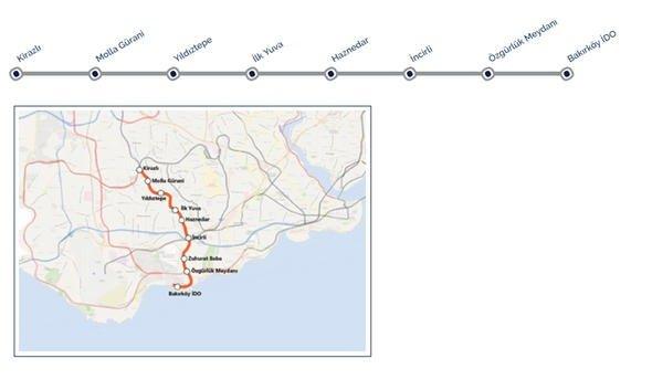 Hattın adı: Bakırköy(İDO) - Kirazlı Metro Hattı (UBAK)