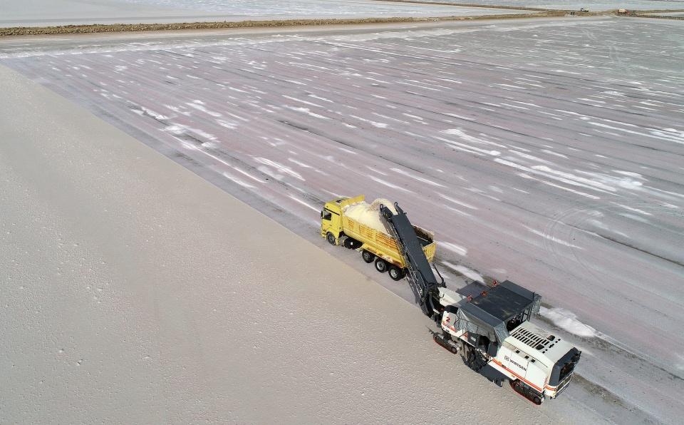Uçsuz bucaksız gölün yüzeyinde oluşan tuzu, modern makine ve ekipmanla hasat ettiklerini belirten Çetiner, şöyle konuştu: