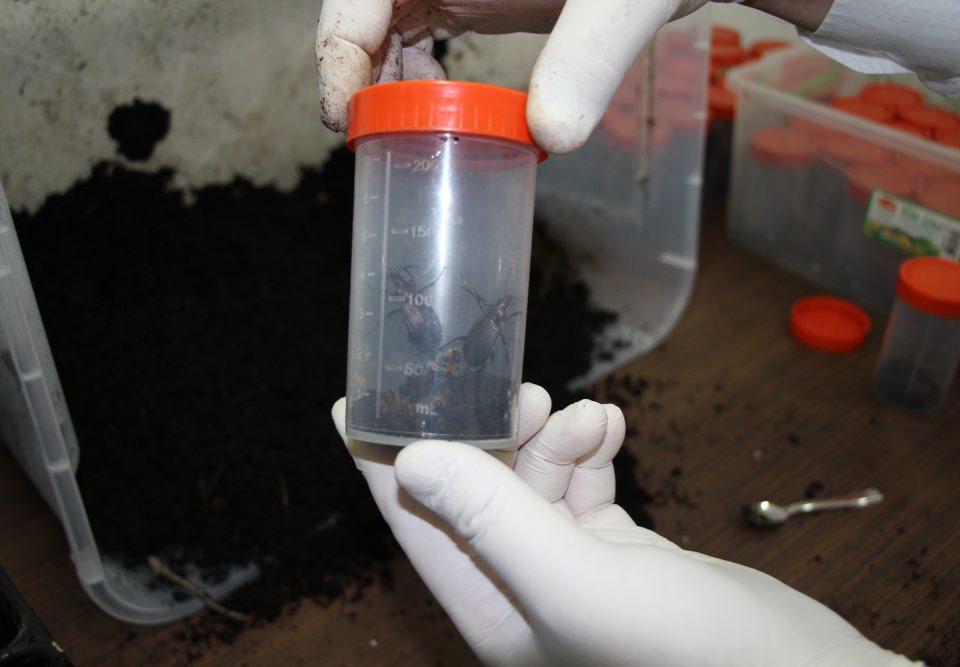 Çam kese böceğinin popülasyonunun denge altında tutulması, zarar eşiğinin aşağıya çekilmesi için biyolojik mücadele yapıldığını vurgulayan Çelen, Antalya'da doğal ortamından toplanan anaç calosoma sycophantaların Büyükada'da bulunan laboratuvara getirilerek çoğaltıldığını anlattı.