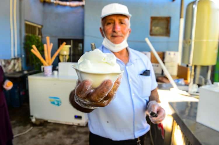 Manda sütünden ürettiği dondurmayla müşterilerine yetişemiyor