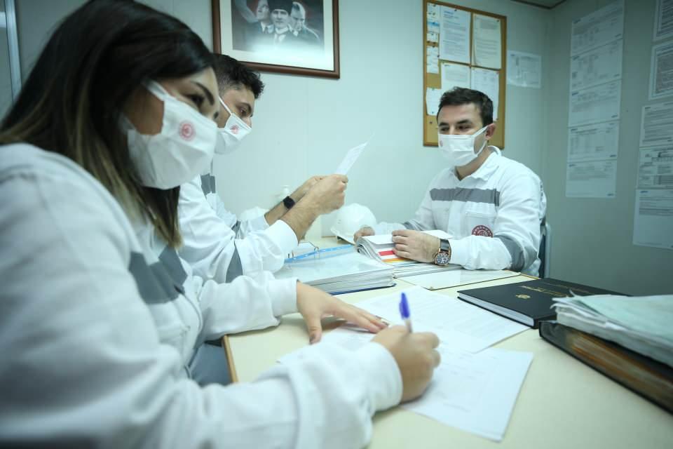 Acil durum jeneratörünün testini yapan görevliler, dümen dairesi ve köprüüstü arasındaki haberleşme sistemlerinin olağan dışı durumlarda elle çalışıp çalışmadığını da kontrol ediyor.