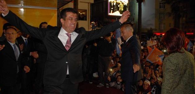 Ekonomi Bakanı Nihat Zeybekci,yerel seçimlerde AK Parti'nin Denizli Büyükşehir Belediyesi'ni kazanmasının ardından Delikliçınar Meydanı'nda önce konuşma yaptı sonra zeybek oynadı.